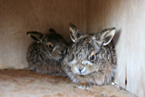 lièvres élevés avec de la verdure, lièvres adaptés au lacher, levrauts de trois mois
